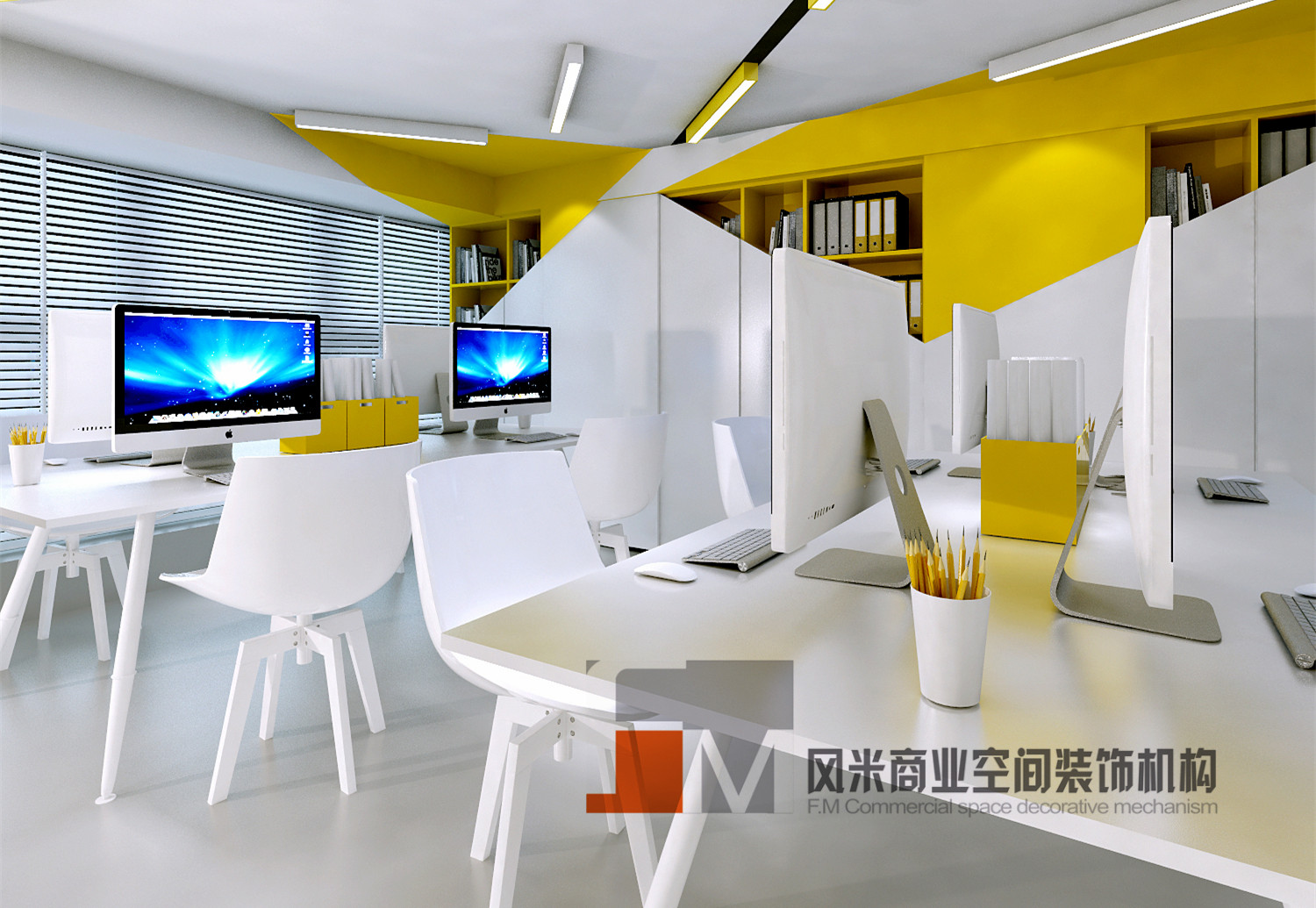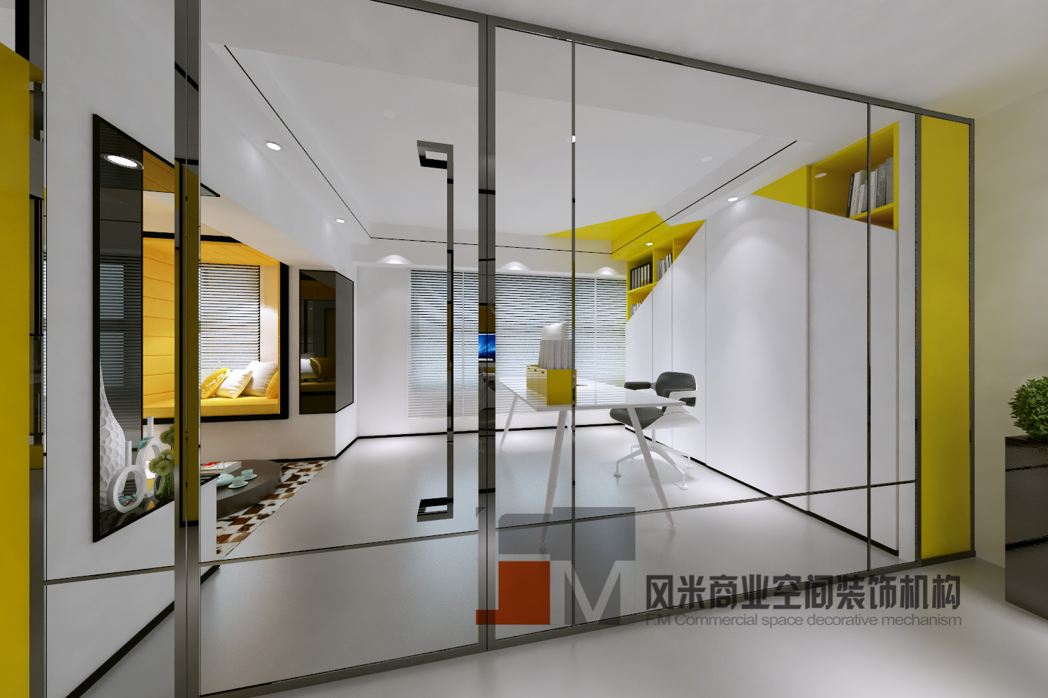 萬科大廈欣悅化妝品公司,白與黃的搭配,簡約、大氣!