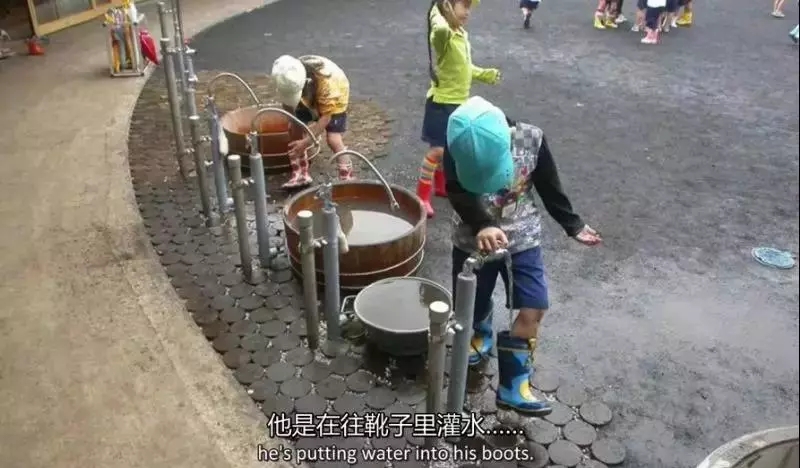 操場(chǎng)上的一排的水龍頭,下面是沒有水池的,洗完后如果不關(guān)水龍頭,水就會(huì)濺到小朋友的身上,這樣他們會(huì)下意識(shí)地關(guān)閉水龍頭,節(jié)約水資源。