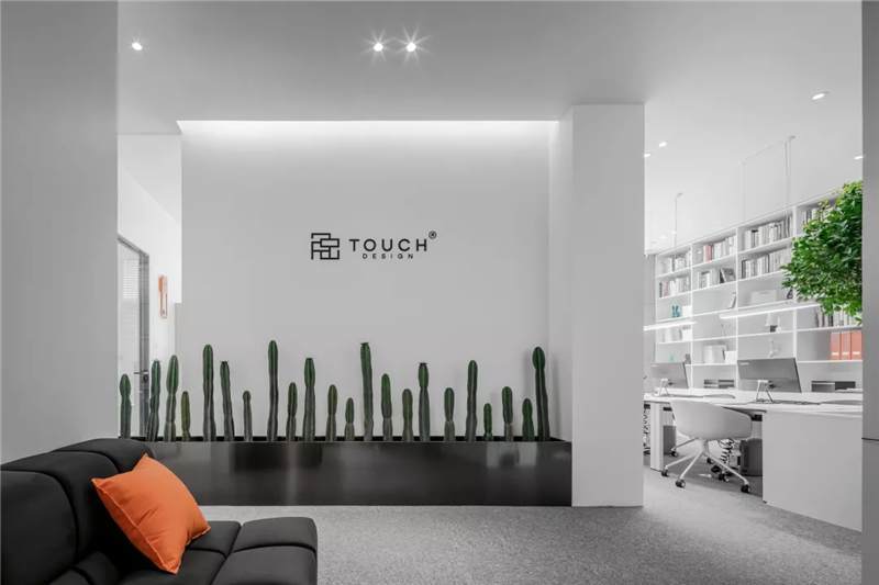 刪繁就簡,以最經典的白色為主題搭配色調,沒有繁瑣的設計和過多的裝飾,減去辦公中的壓抑感。通過將自然純凈的白色與沉靜黑色相結合,將品牌形象簡潔地呈現(xiàn)表達,同時為左右空間的過渡創(chuàng)建和諧觀感。純白的墻面,接近心靈的澄凈;仙人掌是視覺的焦點,恣意生長、堅韌、夯實根基,也正寓意著公司的設計理念:有所依、有所仗、有所長。