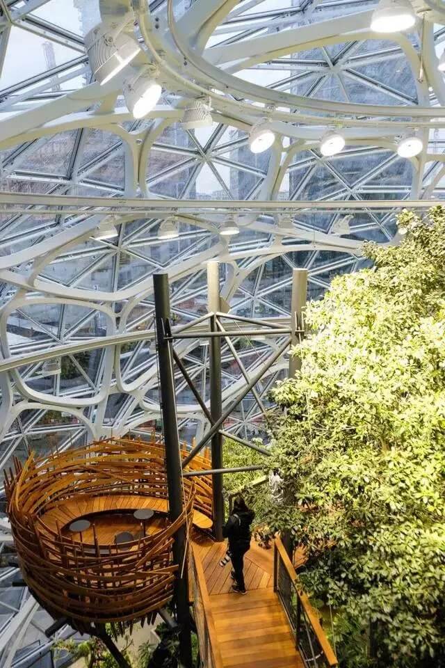 讓他們可以在溪邊的石子小徑上放空自我,在來自南美的大樹下閉目休憩。當然以高標準的企業(yè)文化著稱的亞馬遜,也希望 The Spheres 如此優(yōu)美舒適的生態(tài)環(huán)境能夠讓員工更好地沉思和迸發(fā)出靈感的火花。