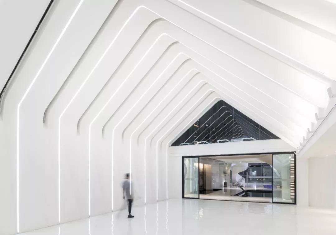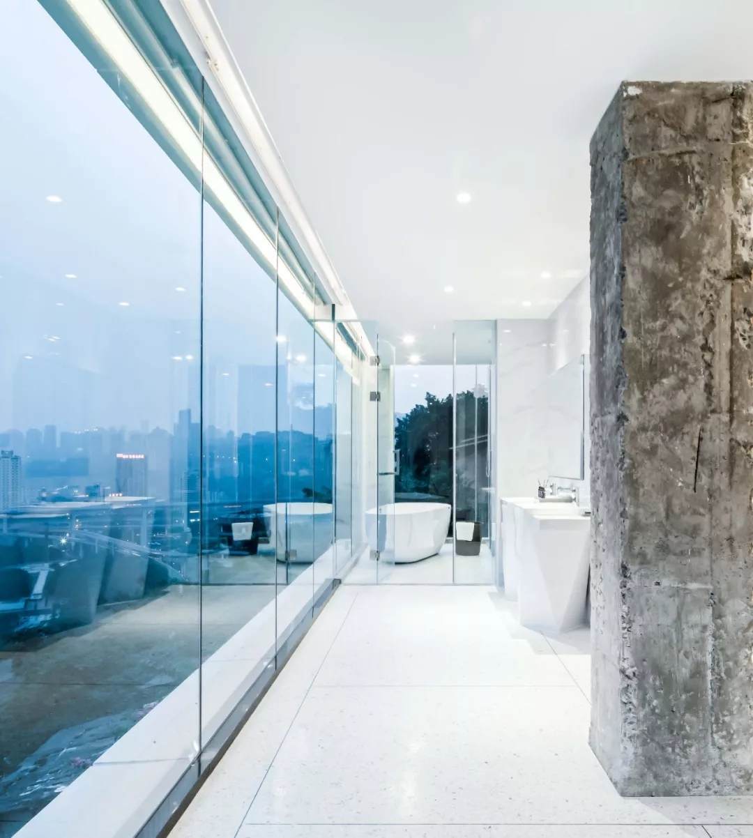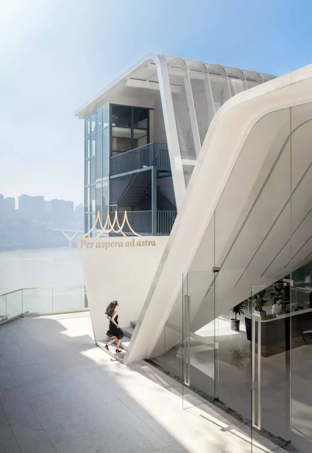 薄殼結(jié)構(gòu)與金屬幕墻構(gòu)成的“裙擺”創(chuàng)造出一層集合酒店接待、休憩與多功能廳的開(kāi)放服務(wù)空間,漂浮為頂,下落為幕,抬升為廳,下沉為梯,旅客可以在裙擺之上游走,形成一條多變的觀景路徑,還原了山城的空間體驗(yàn)。
