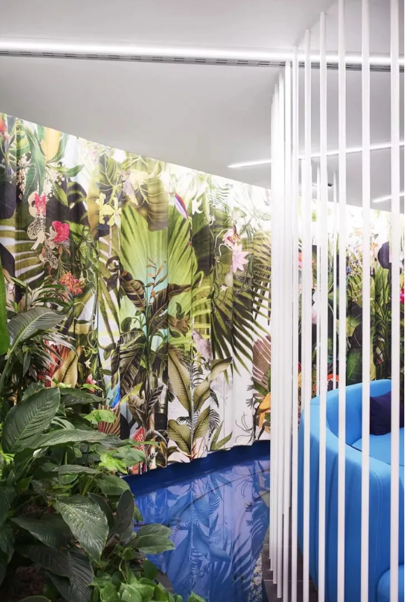 工作區(qū)采用中性色設(shè)計(jì),利于專(zhuān)注工作。淡粉色的走道是真正的情緒助推器,它喚起了員工之間的情感共鳴。精心布置的水源和雅致的燈光設(shè)計(jì)有助于帶來(lái)更愉悅的心情。熱帶壁紙與柔軟的沙發(fā)和小圓桌塑造了一個(gè)熱情洋溢的活力氛圍。