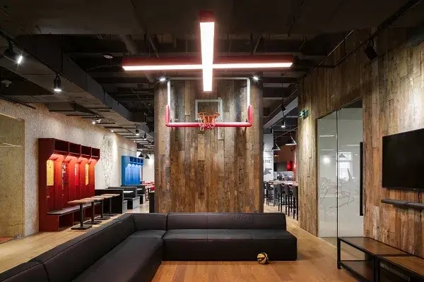 以體育為主的辦公室也隨處可見顯著的運動基因:1比1籃球架、懸掛著各類巨星簽名球衣的辦公座椅、德約科維奇的畫像、還有員工最愛的乒乓房。