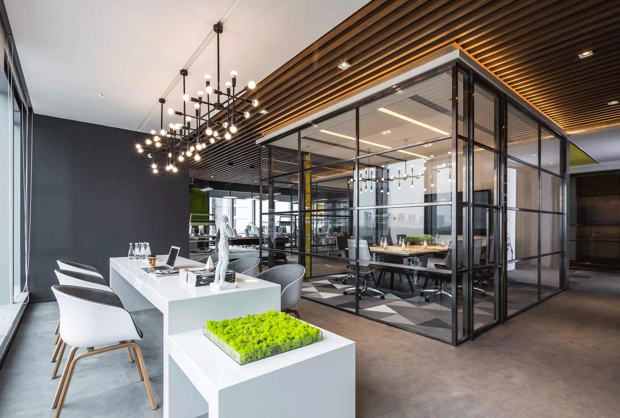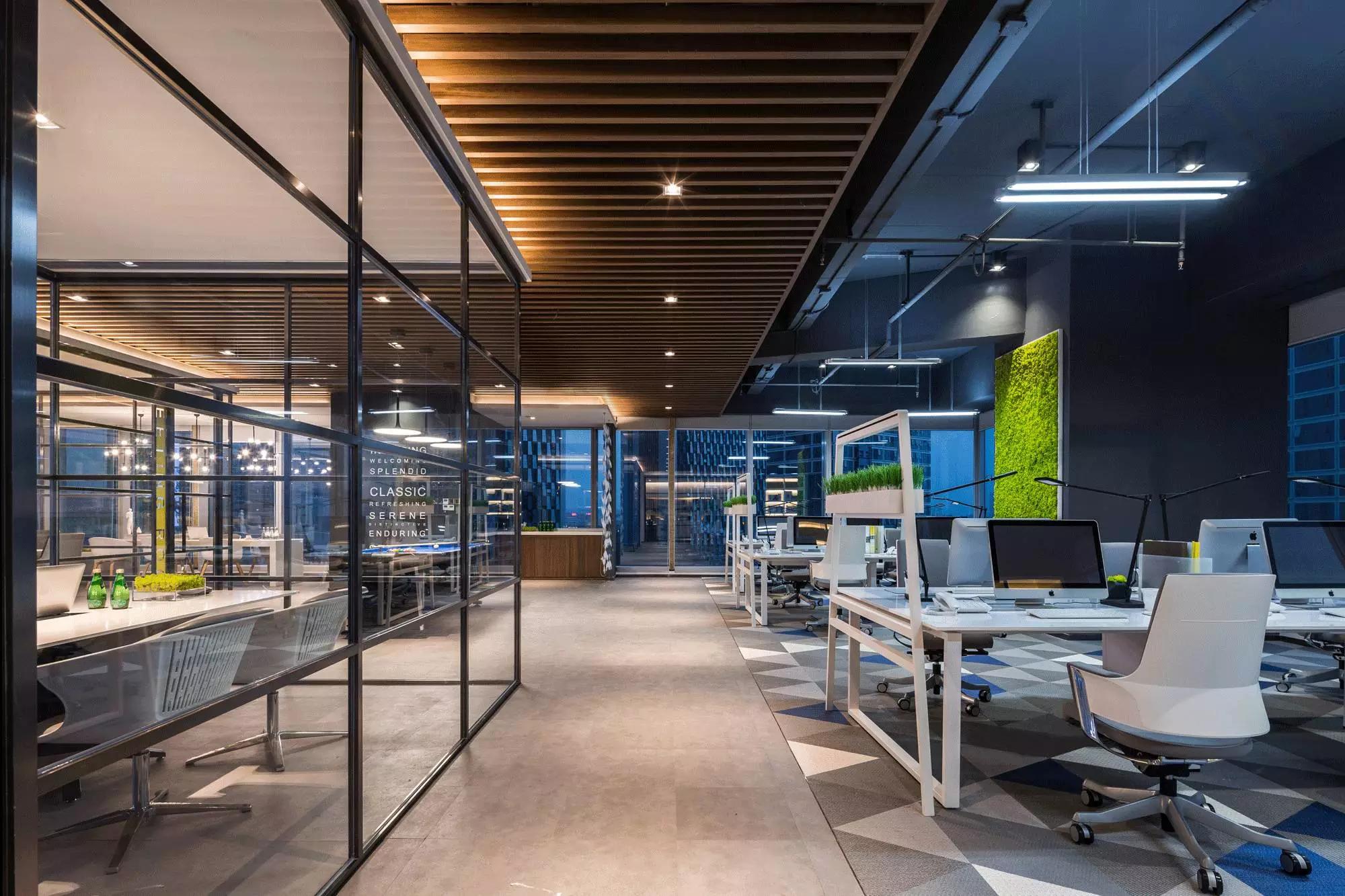 采納了“自由”空間慣用的開放式設計,拋棄了沉悶的障礙物、墻壁,僅預留必要的墻體,并用少數玻璃分割不同的空間,多人會議室、小組會議室的靈活設計,動線連貫流暢,充分滿足了現代科技空間“樂活、高效”的辦公需求。