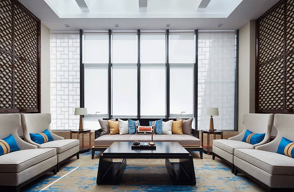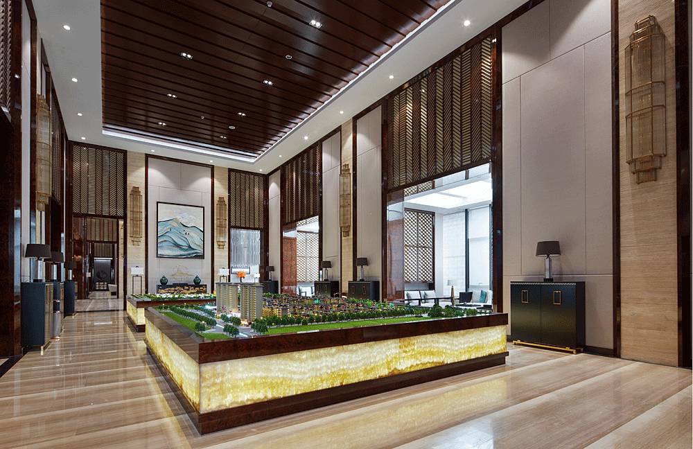 沙盤區(qū)采用簡(jiǎn)單、大氣的設(shè)計(jì)手法,沒有濃墨重彩的奢華場(chǎng)景,更多的是將歷史古都的韻味帶到細(xì)節(jié)中,如格柵、窗欞、黛青色擺件、意境掛畫等東方元素都透露著古韻,并融入大理石、玻璃、燈帶等現(xiàn)代材料,在營造意境的同時(shí)兼顧場(chǎng)所的使用功能。