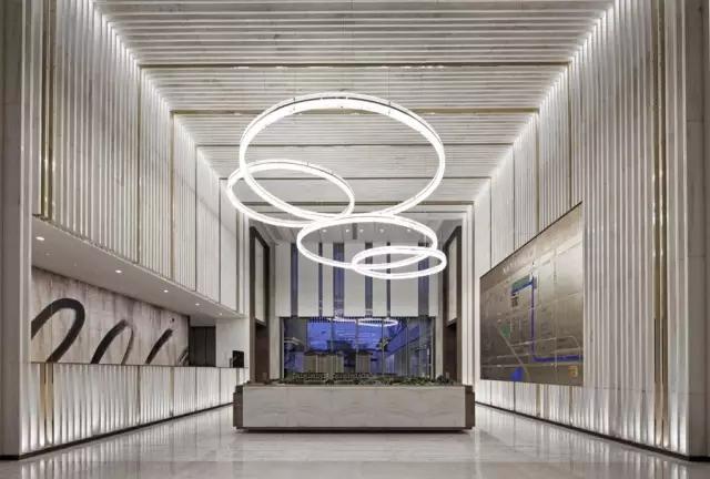 大型吊燈宛如運(yùn)河之水泛起的漣漪,靈動(dòng)唯美,抓人眼球。地面低調(diào)華麗的灰色大理石與之遙相呼應(yīng),古代先哲素有“天圓地方”之說,意境深遠(yuǎn)的寫意格調(diào)翩然入室,整個(gè)空間滲透著典雅尊貴的氣派。