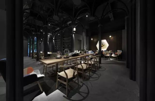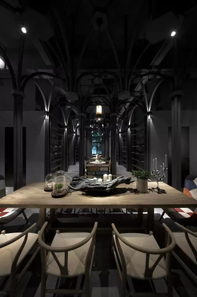 原建筑空間剛剛結(jié)束了破敗的工業(yè)廠房的狀態(tài),業(yè)主接手時(shí)還是一片狼藉。項(xiàng)目的運(yùn)營(yíng)團(tuán)隊(duì)希望打造集餐飲區(qū)、咖啡區(qū)、音樂活動(dòng)區(qū)及一個(gè)塔羅牌活動(dòng)區(qū)為一體的復(fù)合空間。設(shè)計(jì)團(tuán)隊(duì)從項(xiàng)目的主題概念中所散發(fā)的神秘色彩入手,希望在偏精神層面的建筑中汲取靈感,翻閱并走訪了大量的哥特式建筑,從挺拔向上的建筑空間結(jié)構(gòu)中體會(huì)與神對(duì)話的力量感,然后將其移植到這個(gè)項(xiàng)目中,以當(dāng)代的構(gòu)成形式,向傳統(tǒng)建筑致敬。